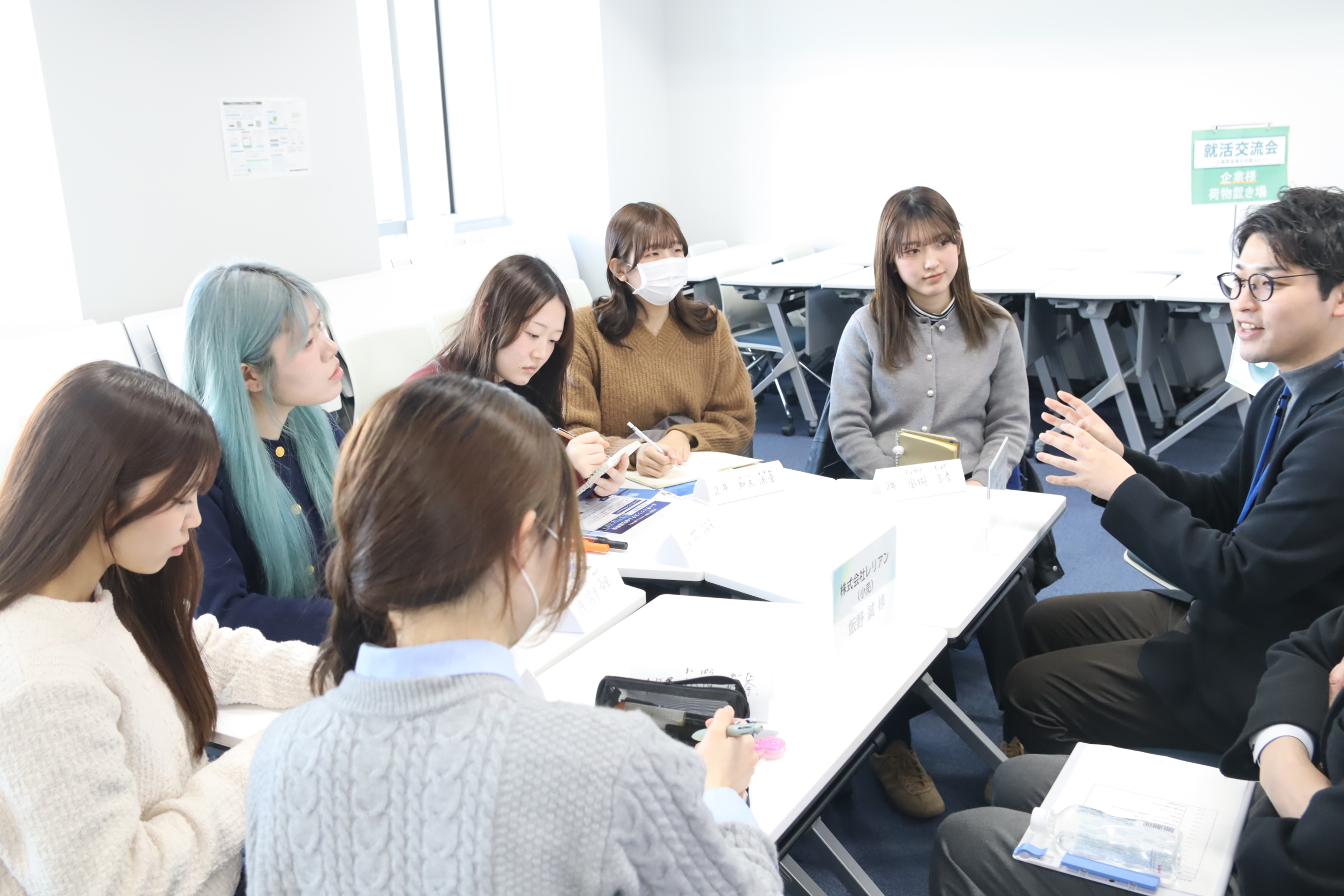 先日キャリアセンター主催のイベント「就活交流会」を開催しました。 企業の人事担当者と直接話せる貴重なイベントで、2014年から10年以上続くキャリアイベントです。 8社の企業の方にご参加いただき、人事担当者のリアルなお話もお聞きすることができました。