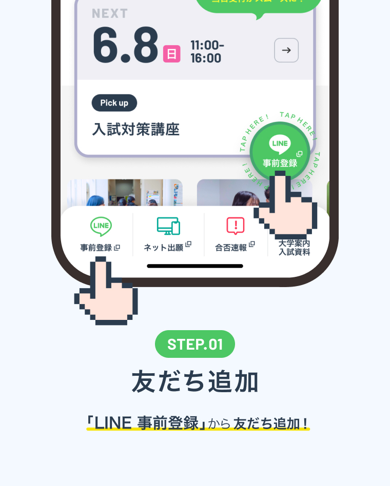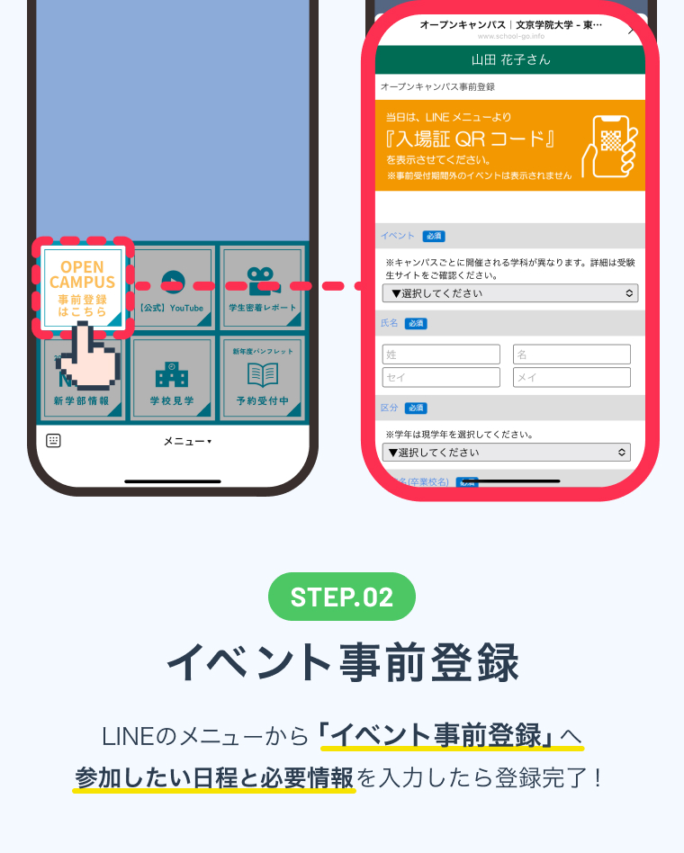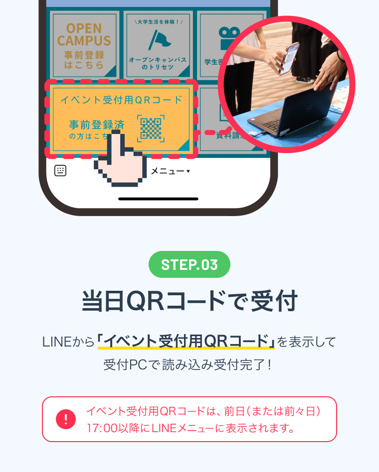 当日、現地でも受付できますが、事前登録しているとスムーズにご案内できます!