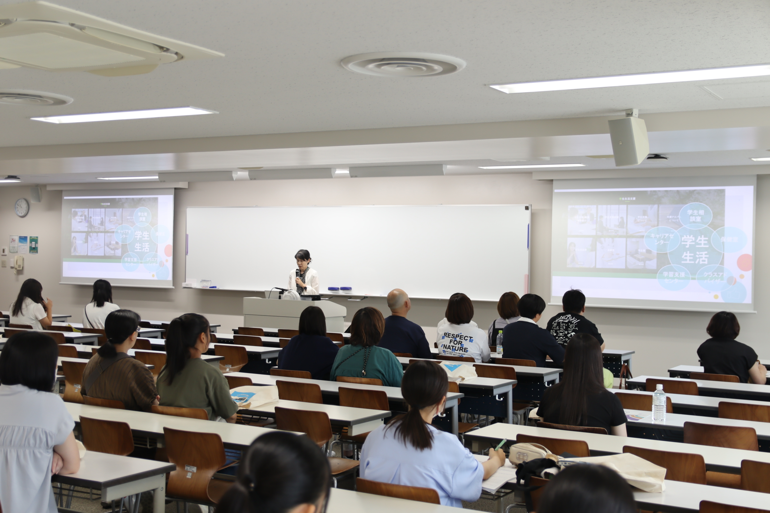 実際に授業で使用している教室を学生スタッフがご案内します