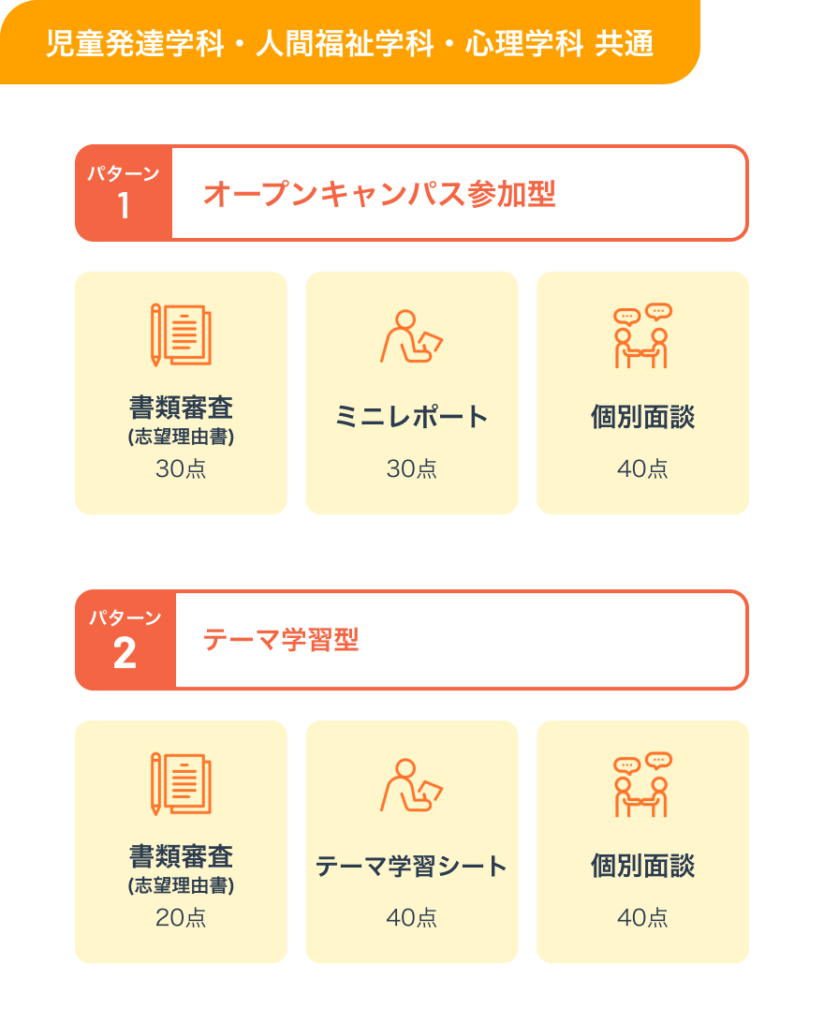 ※児童発達学科 国際こどもコース希望者は、面接冒頭に英語で30秒程度の自己紹介をしていただきます。
