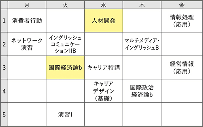 ※ 時間割は当時のものです。次年度は変更になる場合があります。