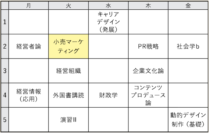 先輩の時間割