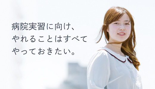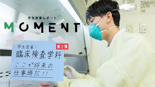 前期は学内実習、後期は450時間に及ぶ臨地実習で医療の現場を体験。臨床検査部や輸血部、病理部、生理検査部など各部署を回り、1・2年次での学びをより実践的なものにします。