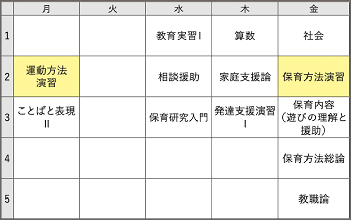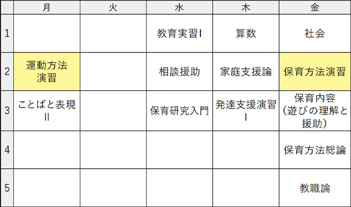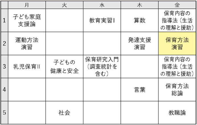 ※ 時間割は当時のものです。次年度は変更になる場合があります。