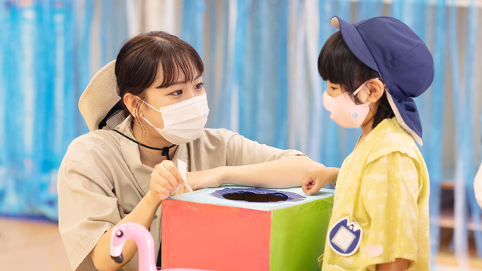 国際こどもコースでは、保育士資格や幼稚園教諭等を目指し、コース必修の科目以外でも幼児英語指導法等の指導法を履修。国内外の学校現場で英語を教えることに強みを持った保育者・教育者を目指します。 -
