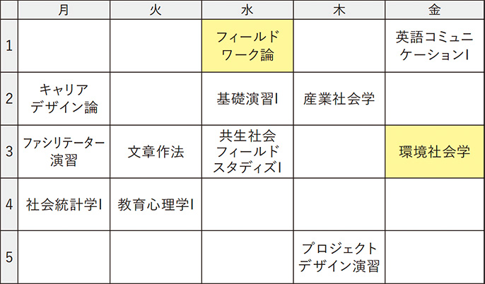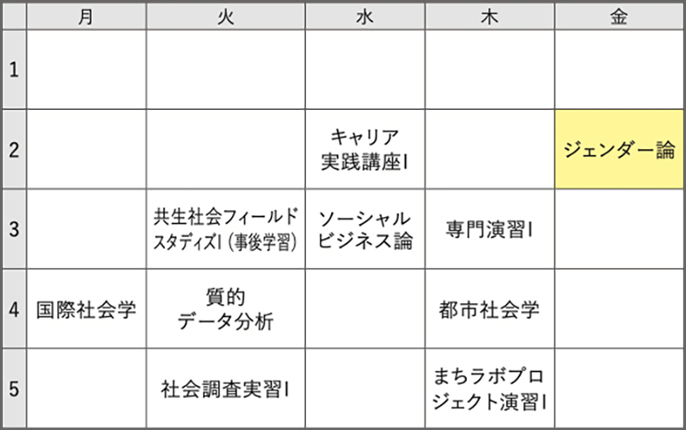 ※ 時間割は当時のものです。次年度は変更になる場合があります。