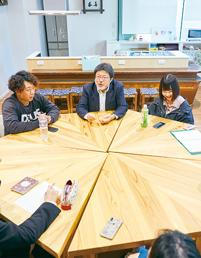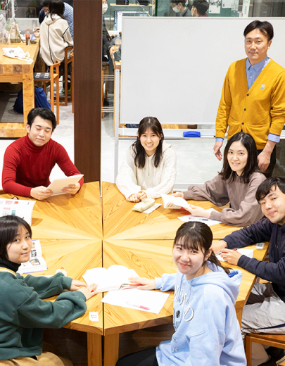 企業、地域や行政と連携したフィールドワークでローカル、グローバルな視点で現代社会が抱える課題を体感します。まちづくりや近隣の高校とも連携した農村再生プロジェクトなど、社会と連携し、実践力と主体性を培います。「基礎演習」では、3年次から始まるゼミを意識して学びます。