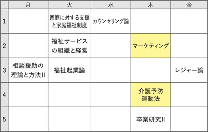 ■マーケティング ■経営戦略 ■福祉ビジネス演習 ■キャリアインターンシップC -