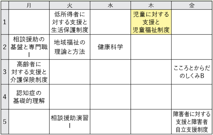 ※ 時間割は当時のものです。次年度は変更になる場合があります。