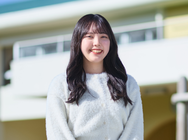 幼稚園教論を目指していますが、保育士資格と小学校教論の免許を取得できることが決め手となり、文京学院大学を選びました。将来の目標は一人ひとりの子どもの成長に寄り添った援助ができる幼稚園教論になることです。学外の幼稚園などでの実習は大勢の子どもと接しながら学ぶことができますが、キャンパス内の子育て支援施設「ふらっと文京」では、親子の関わり方も間近で観察できます。保育・教育現場と家庭が連動した子どもの教育について考えられるようになりました。1年次には海外短期フィールドワークに参加し、多国籍の子どもや保護者にも寄り添える教育者になりたいという新たな目標ができました。
